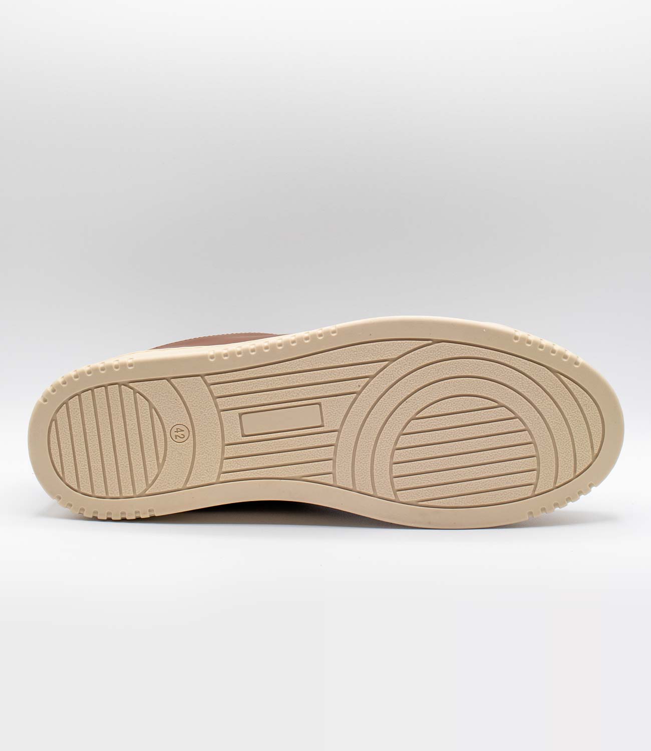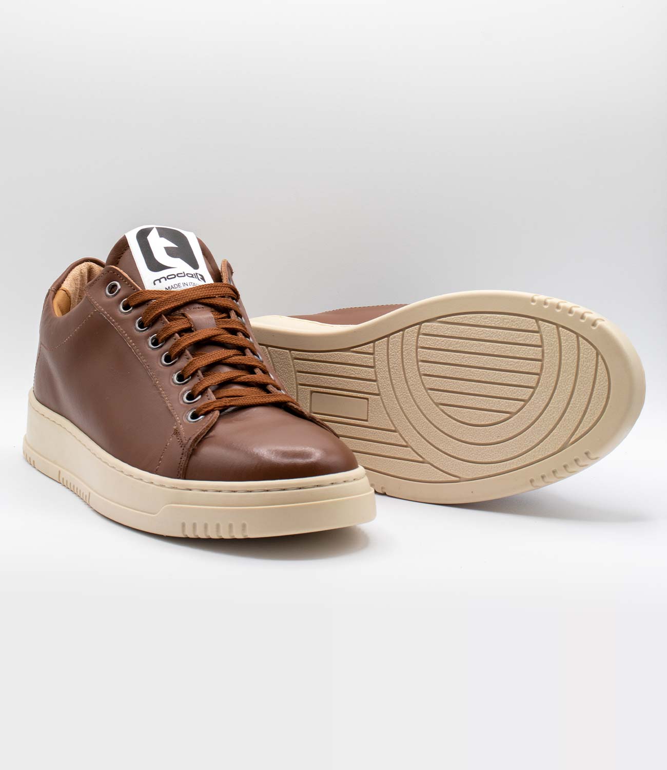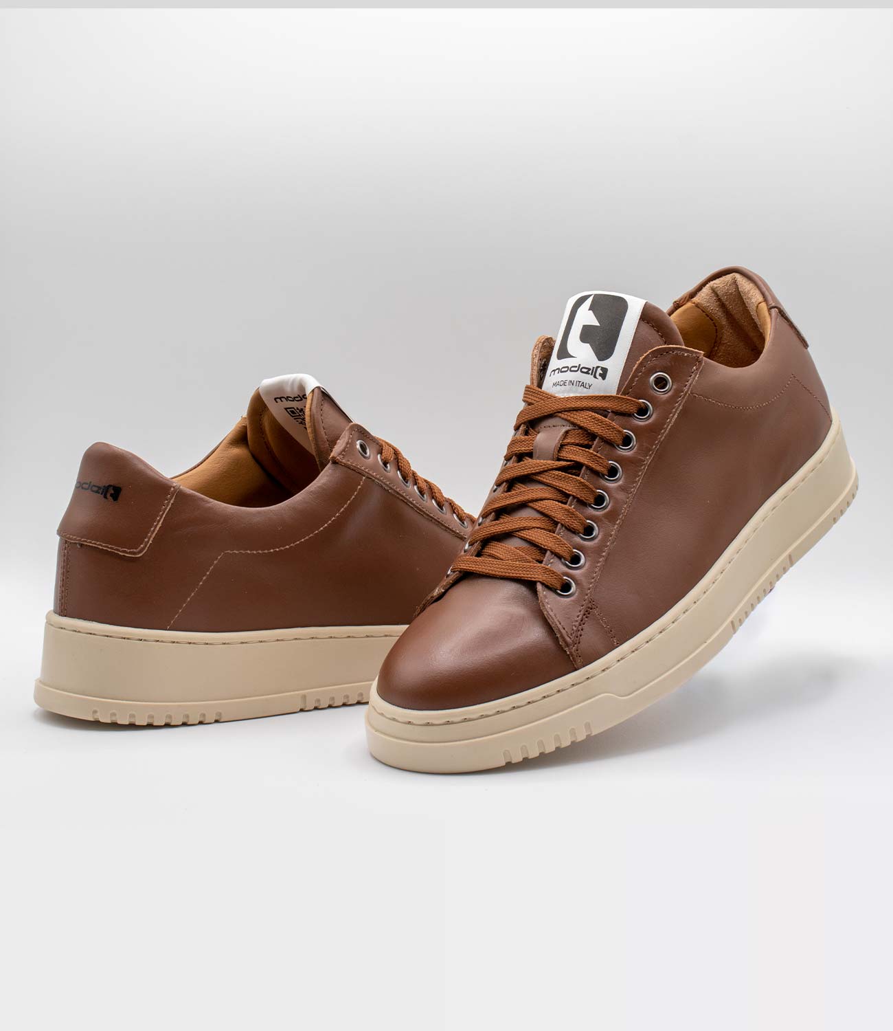 Sneakers in vera pelle. Tomaia in morbida pelle totalmente in color cuoio. Soletta anatomica e suola in morbida gomma ultraleggera, l'interno è in micro fibra ad alta traspirazione. Prodotto 100% made in Italy interamente fatte a mano dai nostri artigiani calzaturieri.